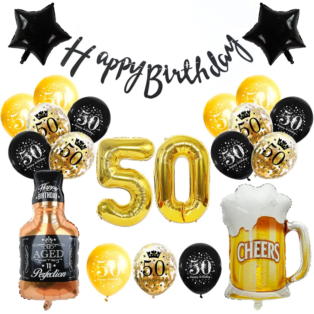 22 шт./компл. черного и золотого цвета, произведенный на одной винокурне номер фольга, Латекс шары комплект для взрослых День рождения украшения Алюминий фольга Кубок пива воздушные шары