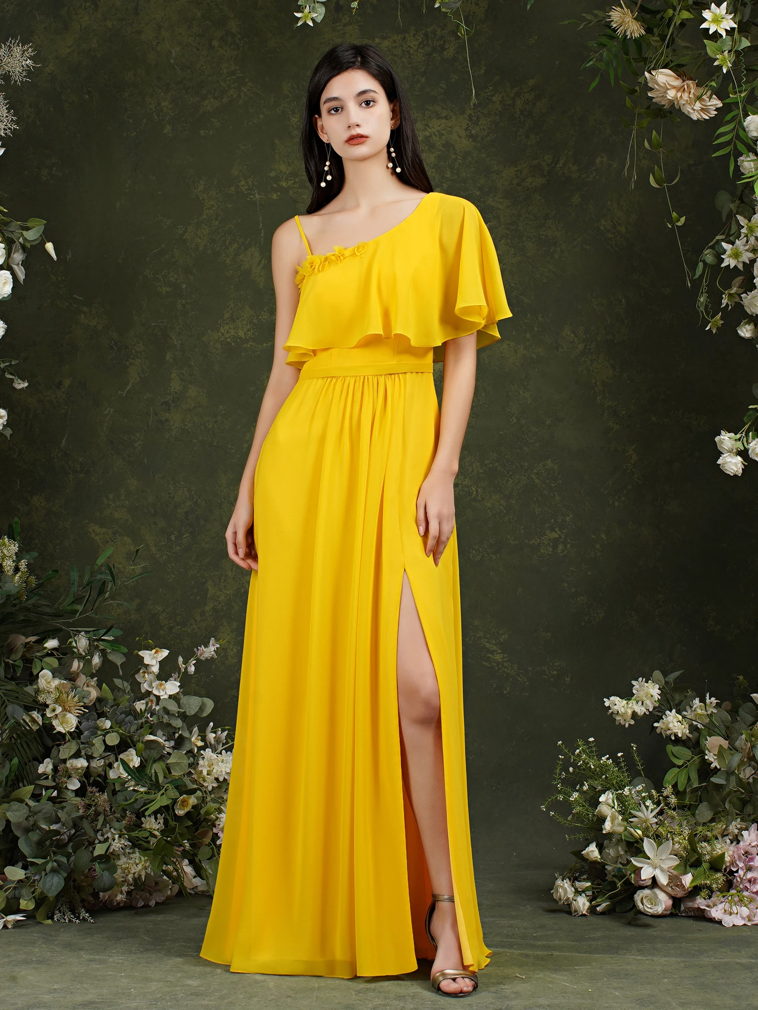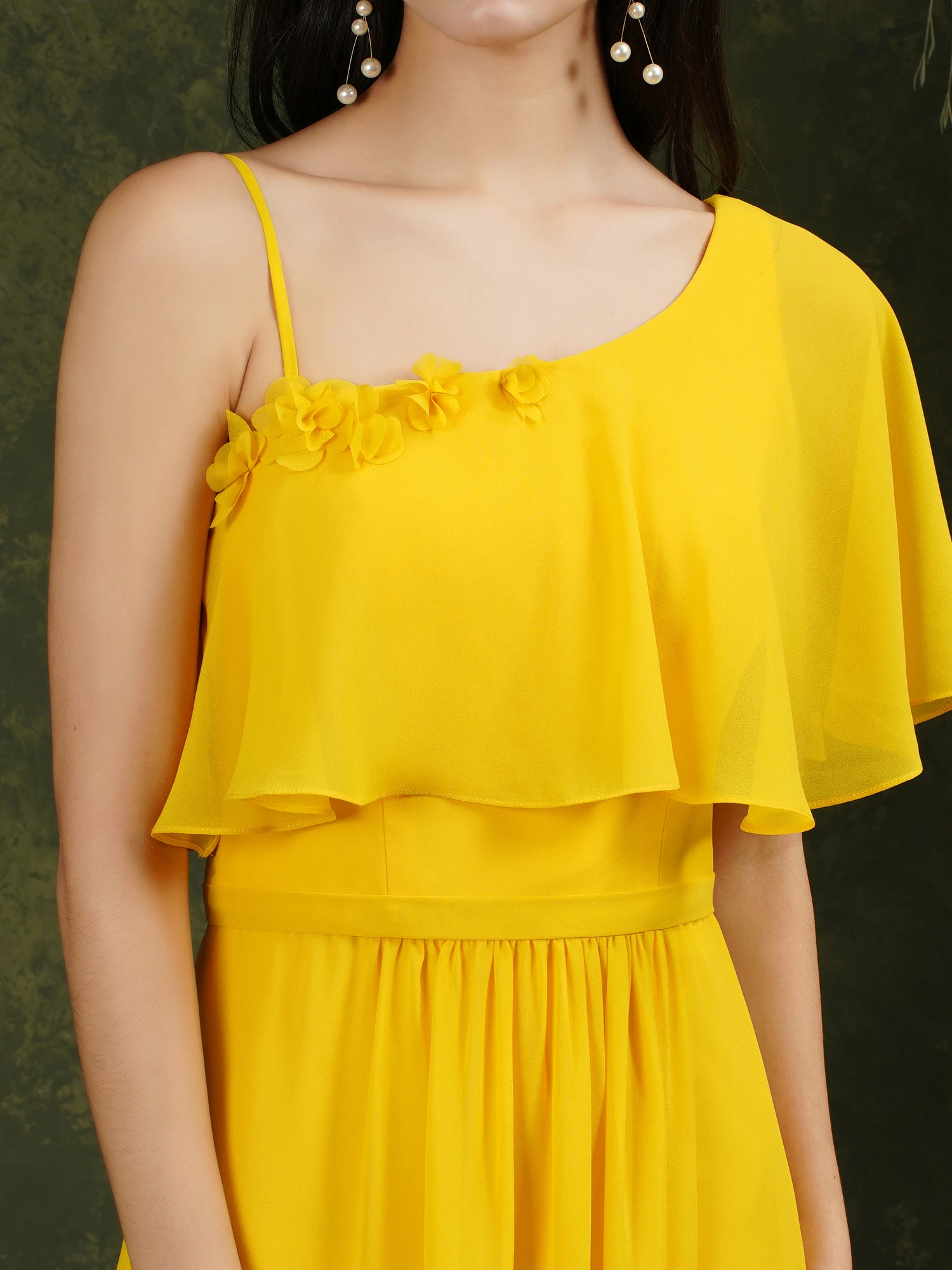 Женское Тюлевое платье на бретельках длинное кружевное синего цвета с лямкой шее