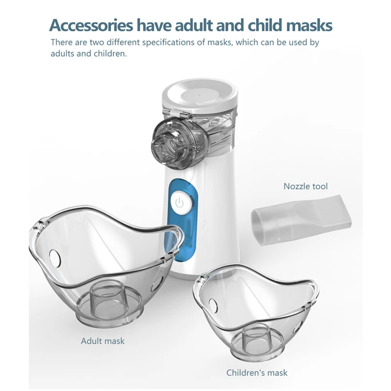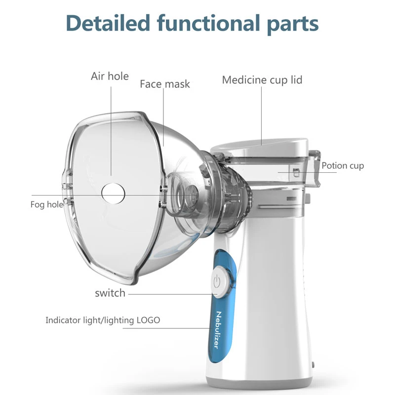 1.Высокая эффективность: портативный ингалятор производит мелкий туман, чтобы помочь лучше поглощать гранулы, который очень подходит для поглощения детьми и взрослыми, и терапевтический эффект очень тонкий. Кроме того, распыление лекарственных средств и нормальные частицы распыления солей меньше <5мкм, которые более эффективно используются для поглощения лекарственных средств.