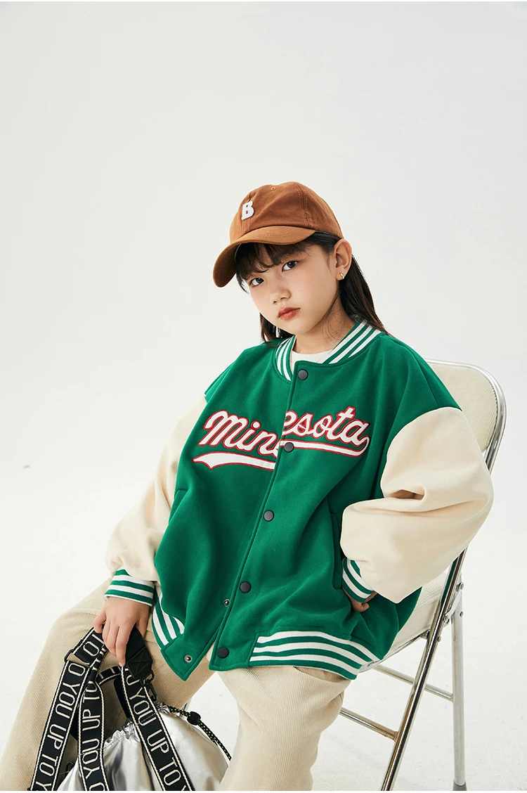 Шикарная уличная одежда унисекс для мальчиков и девочек, Университетская бейсбольная куртка-бомбер для малышей, детские куртки с буквенным принтом в стиле хип-хоп, куртка для колледжа, 12 лет