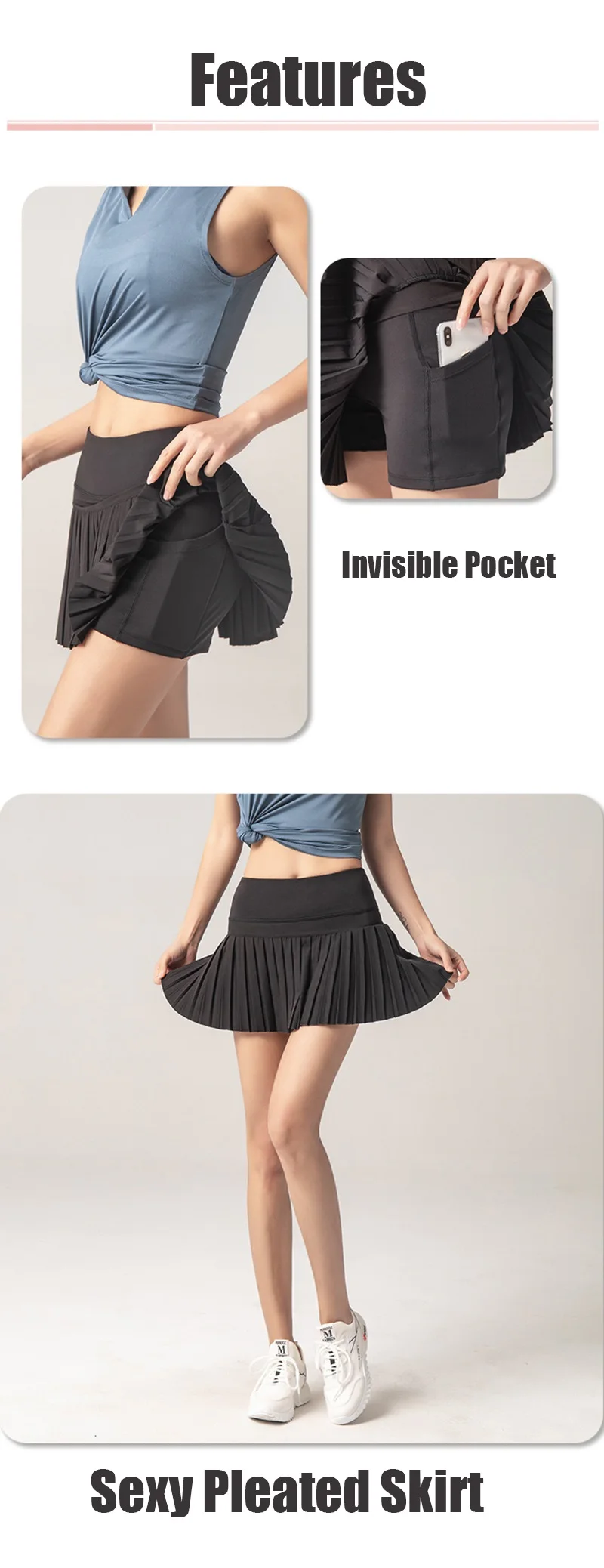 Новое Женское Спортивное платье для бега, сексуальные женские спортивные шорты для фитнеса, Женская плиссированная юбка для тенниса с боковым карманом