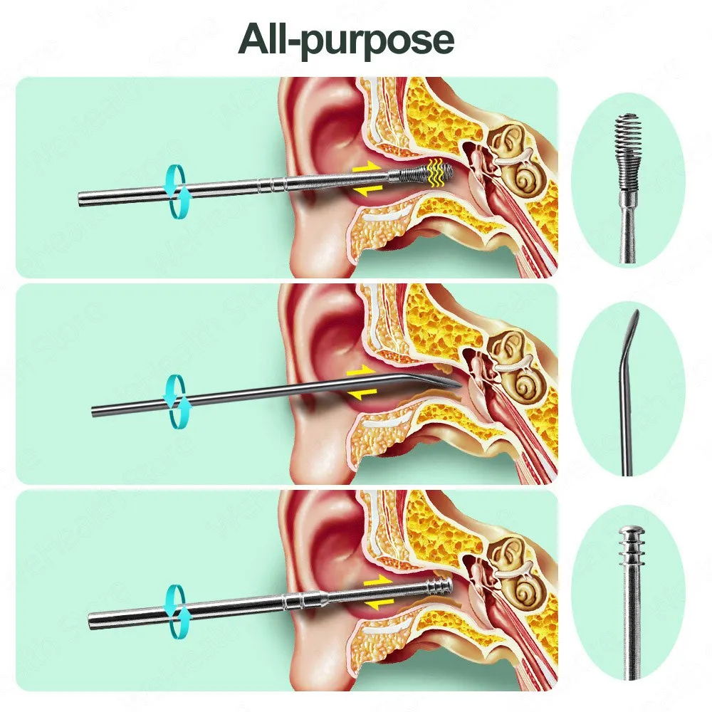 Compared with the traditional cotton swab, which may push the earwax into the ear, our earwax removal kit have several improvements. The ear pick in scoop shaped can remove the earwax easily and effectively. The ear pick in spiral design can relieve itching by massaging your ear canal.