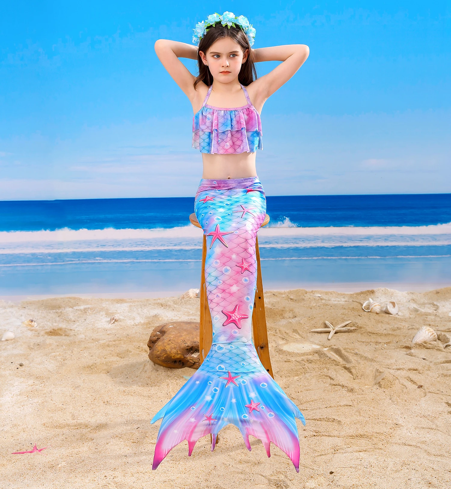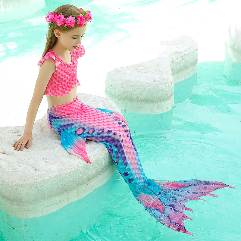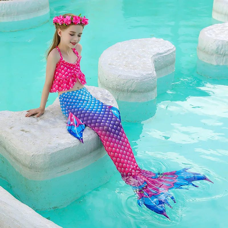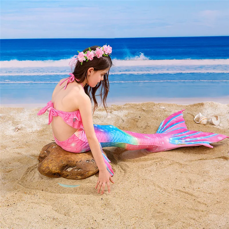 Детский купальник с хвостом Русалочки, детский костюм Русалочки для девочек, косплей, Пляжная Флиппер, одежда, купальный костюм, костюмы на Хэллоуин