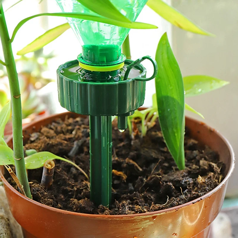 Простой и удобный в использовании: устанавливается без каких-либо инструментов, просто Просверлите несколько отверстий в нижней части бутылки или Отрежьте хвост бутылки, чтобы сохранить поток воздуха, А затем вставьте эти самополивающиеся шипы в почву.
