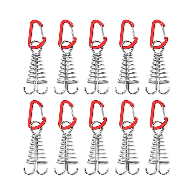Противоскользящие и регулируемые: оснащены пружинными пряжками, которые помогают лучше зафиксировать палатку кольями и предотвращают падение или вращение колышков из-за падения палатки. Очень легко зафиксировать веревку на месте и отрегулировать длину веревки и надежно закрепить палатку.