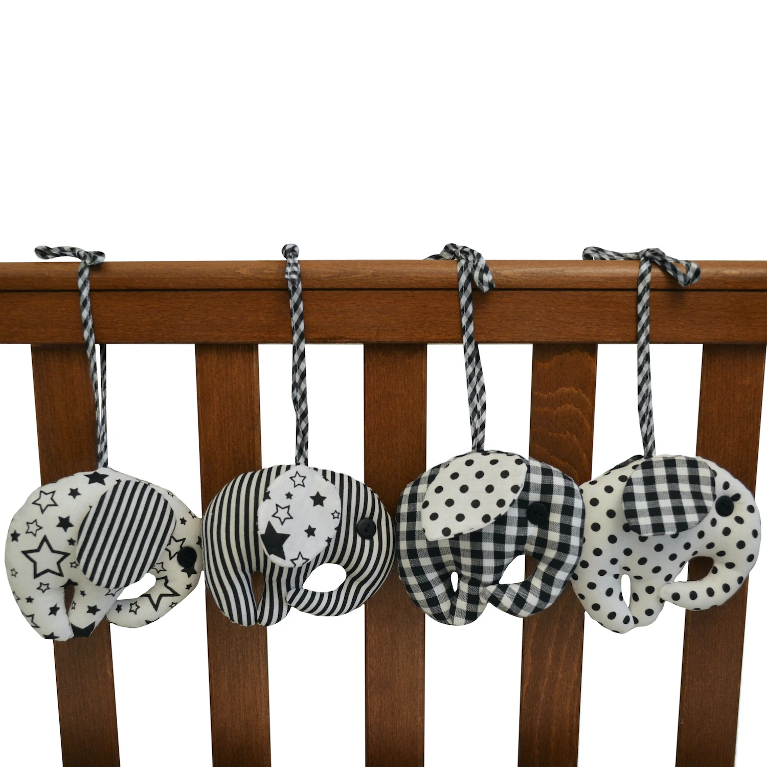 A large set consists of 4 black and white developing toys for kids. Elephants are sewn from high-quality cotton of Russian production. a different combination of geometric black and white figures is most useful for the development of vision and brain of kids.