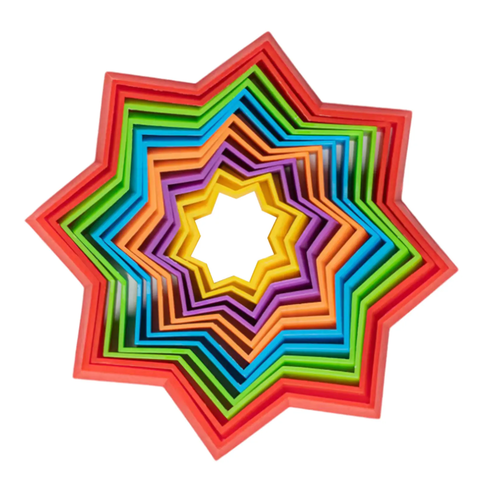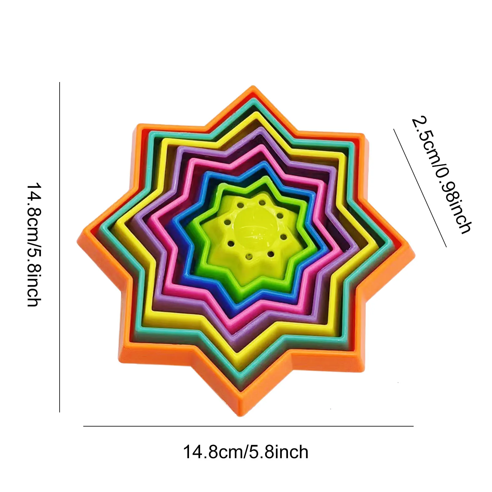 Дети могут развивать базовые двигательные навыки, координацию рук и глаз, а также визуальное понимание путем создания уникальных форм, сортировки, гнездования и укладки во время игры с 3D волшебной звездой.