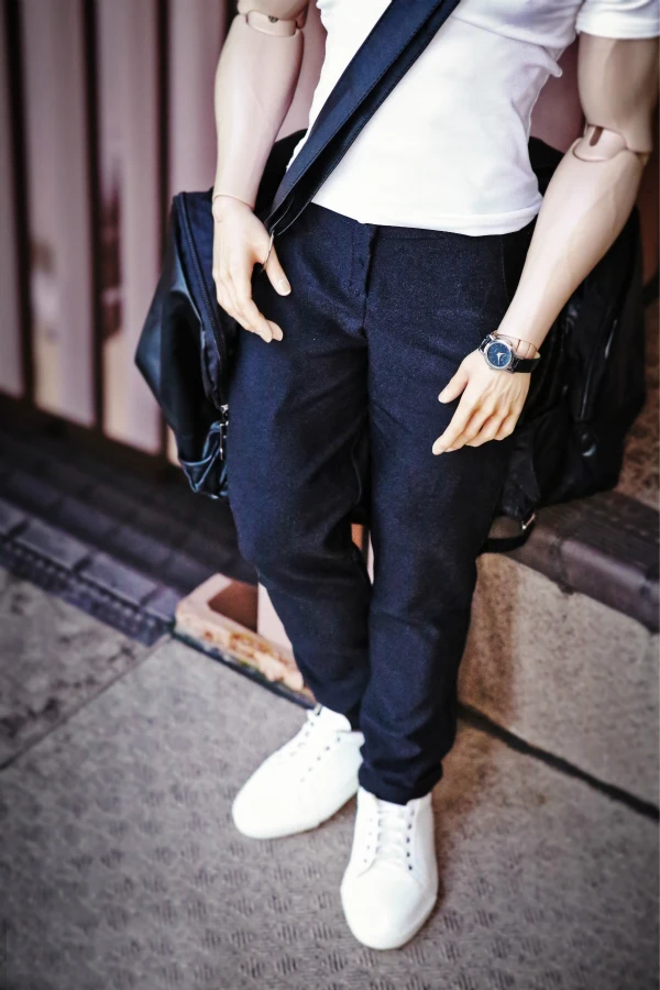 Ткань брюк слегка эластичная, можно закатать штанины, можно сидеть