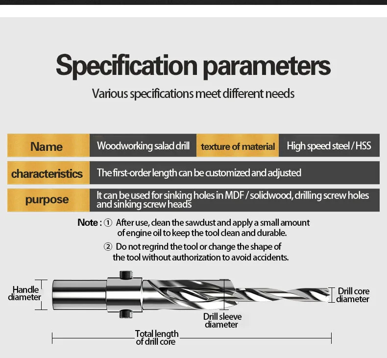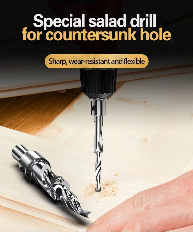 Использование: используется для сверления потайных отверстий в МДФ/твердой древесине, сверления винтовых отверстий и погружения головки винта