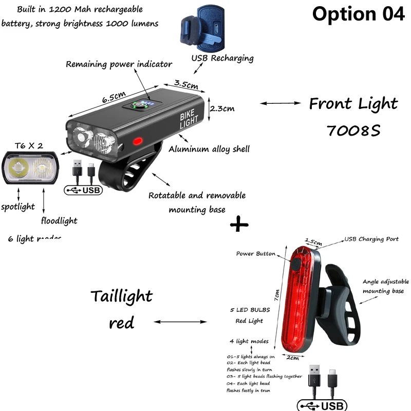 03-светодиодный: 2 x T6 светодиодный лампы, 1 прожектор, 1 прожектор, сильная яркость 1000 люмен