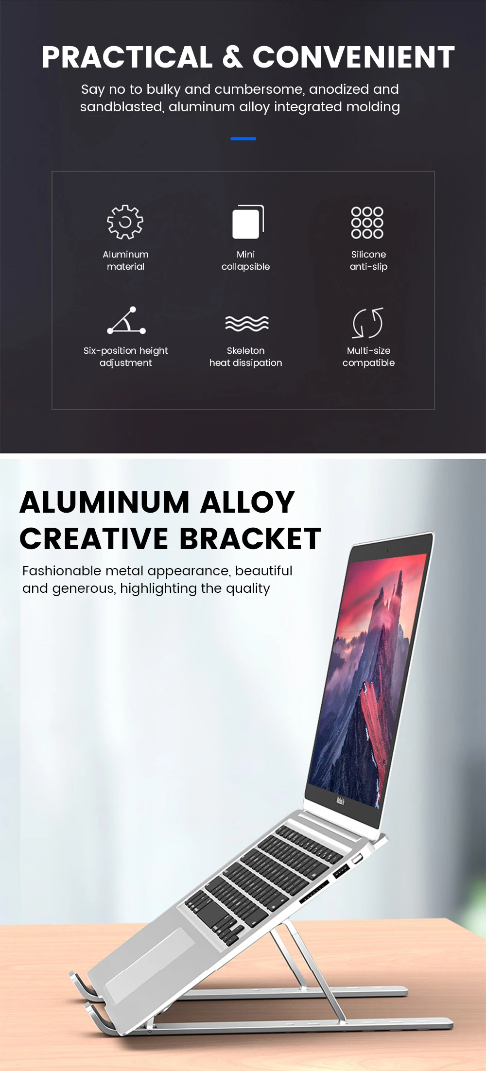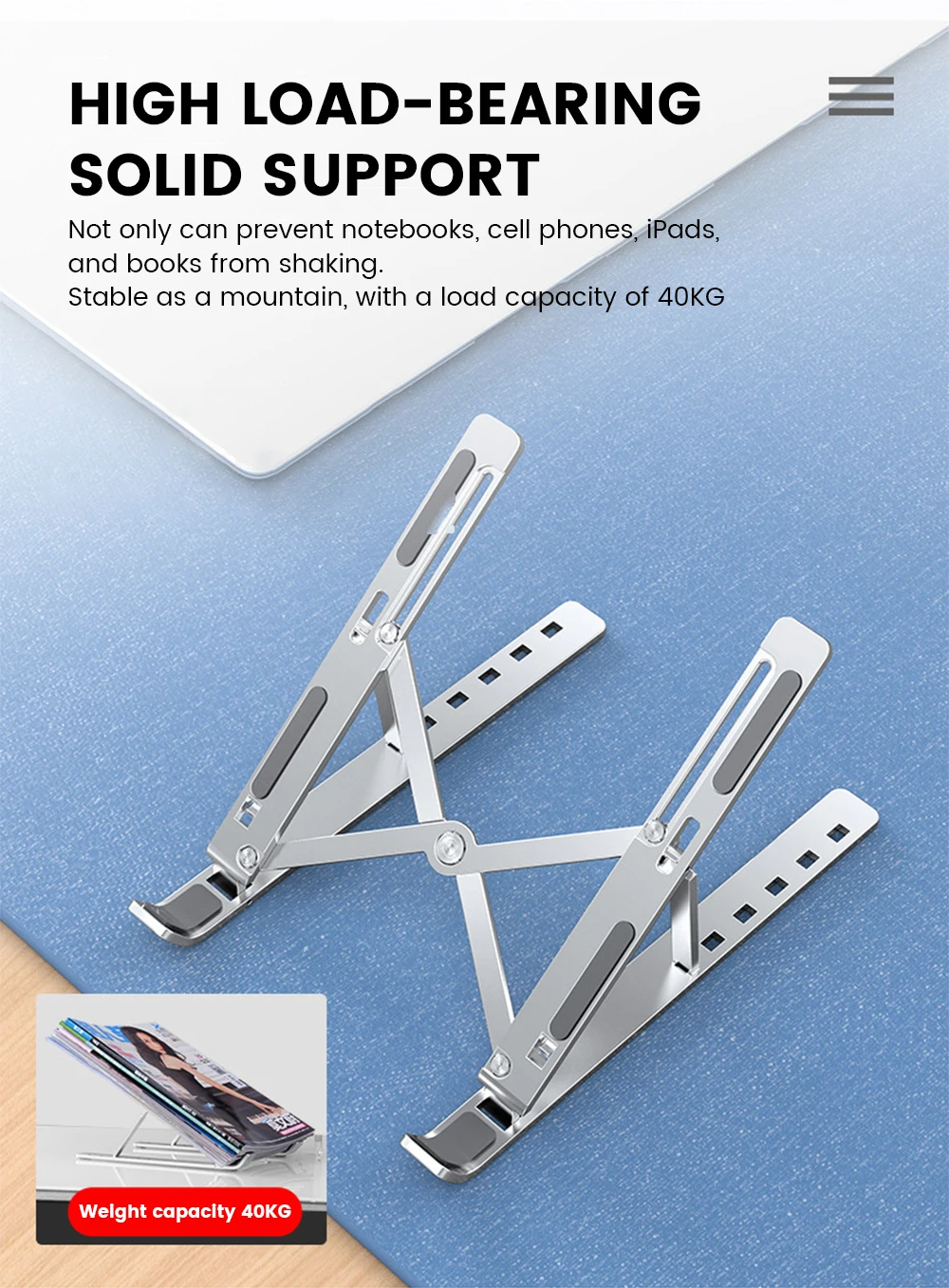[Широкая совместимость] поддерживает все ноутбуки до 15,6 дюйма, совместимый с MacBook Air / Pro, Google Pixelbook, Dell XPS, HP, ASUS, Lenovo, ThinkPad, Acer, Chromebook, Samsung, планшет и iPad.[6-слойный эргономичный дизайн] есть 6 вариантов высоты для фиксации осанки и уменьшения боли в спине, жесткости шеи и боли в запястье.[Портативный и удобный Установка] весом 0,3 кг, может быть быстро складывается в Утонченная конструкция. Сумка для переноски легко носить с собой. Для открытия и закрытия требуется всего 1 секунда.[Стабильность и долговечность] изготовлен из высококачественного алюминиевого сплава, чтобы сделать ноутбук более прочным; противоскользящие подушечки могут поддерживать стабильность подъемной платы ноутбука и защищать поверхность устройства/рабочего стола после размещения.[Вентиляция и тепловыделение]-хорошая вентиляция, также может использоваться в качестве теплоотвода для отвода тепла.Эргономичный дизайнИдеальная высота, легкая работаСмотрите так же другие товары: