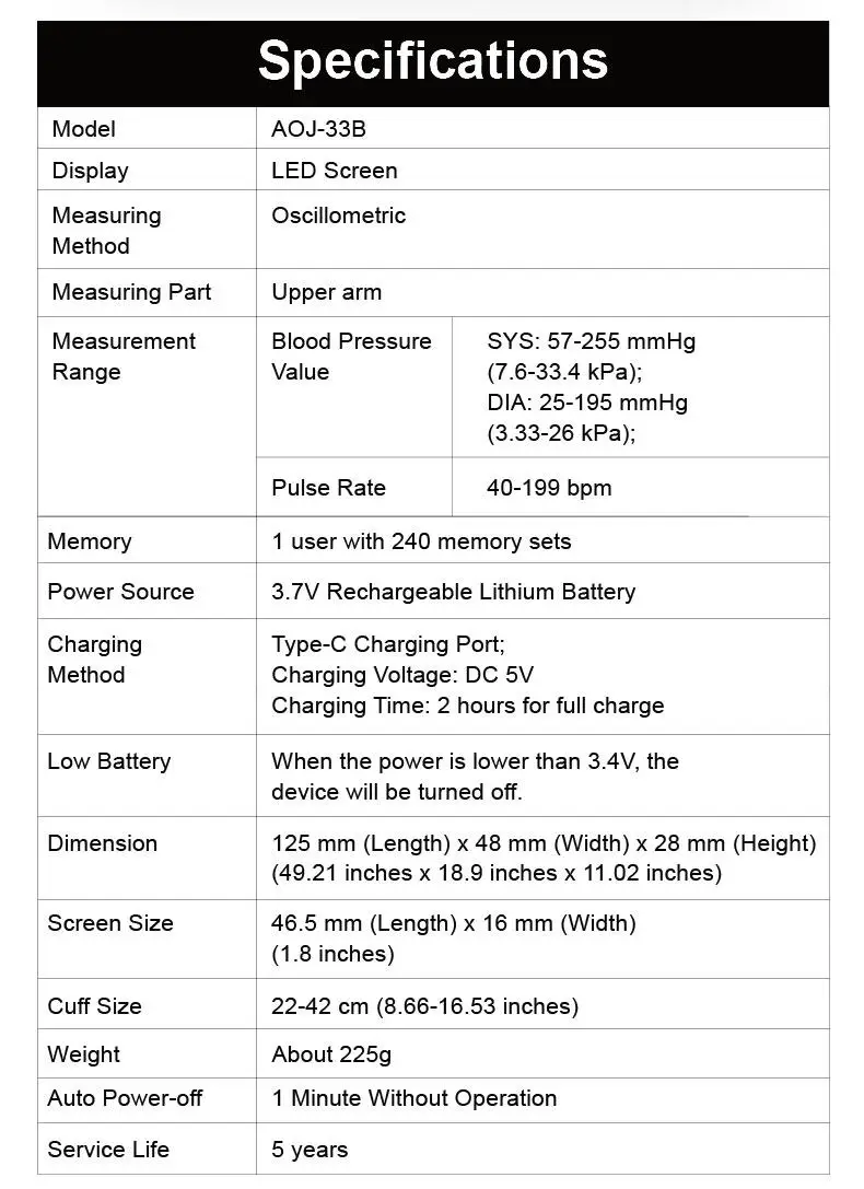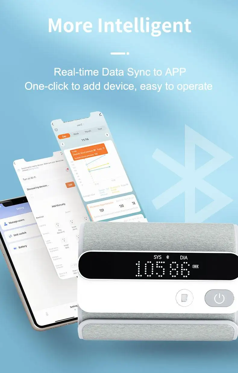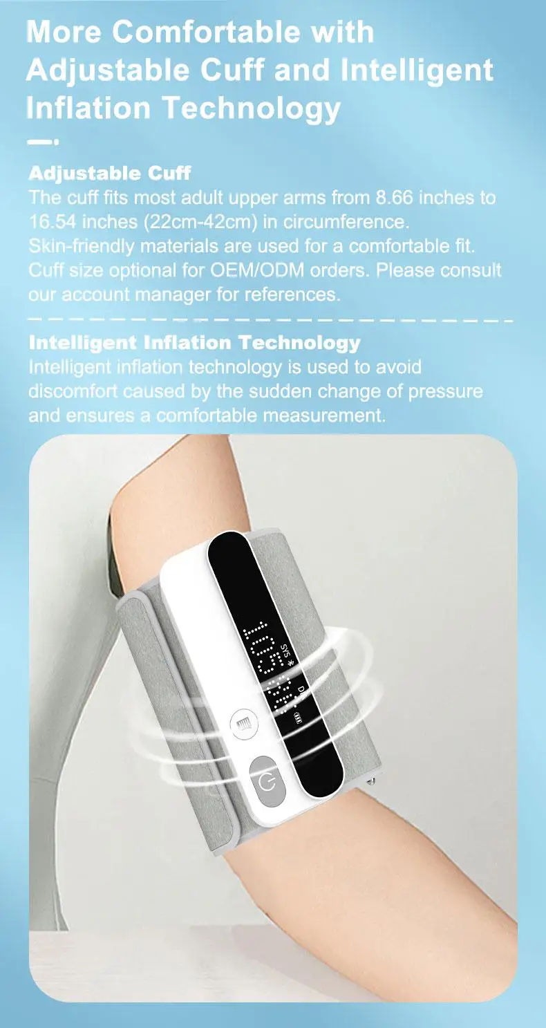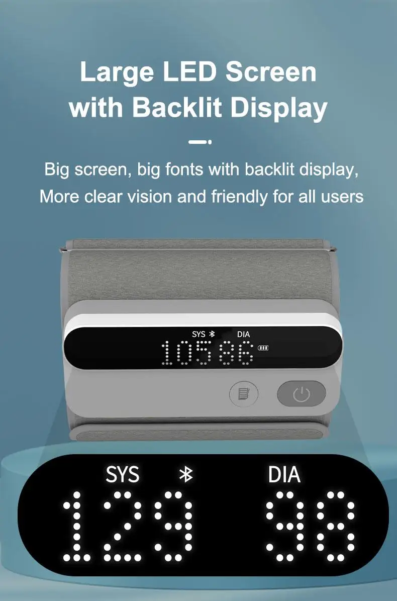 Все-в-одном дизайн с манжетами и монитором интегрированы вместе, вес всего 225 г, более Портативный и удобный.