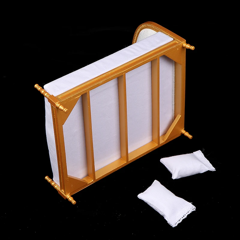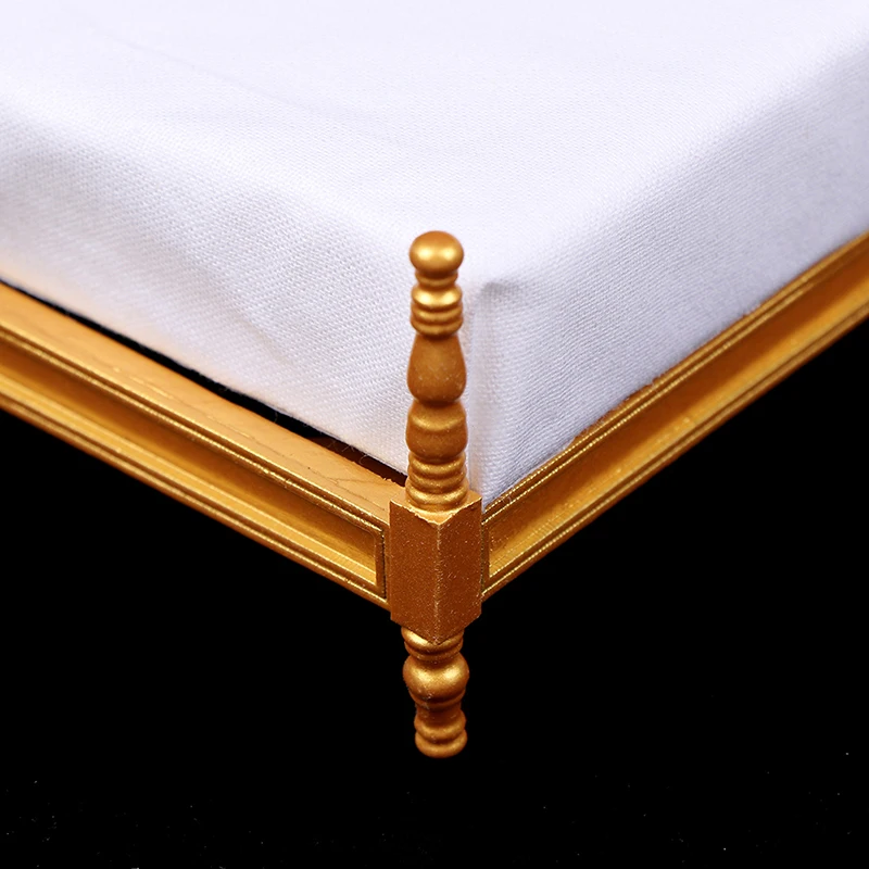 Односпальная деревянная кровать, маленькая и изысканная, подходит для украшения кукольного дома.