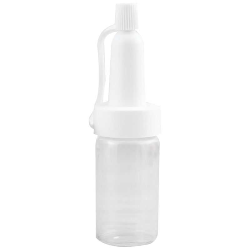 4 емкость для того, чтобы выбрать: 3/5/10/15 мл. Прозрачная бутылка и белая крышка, труба.