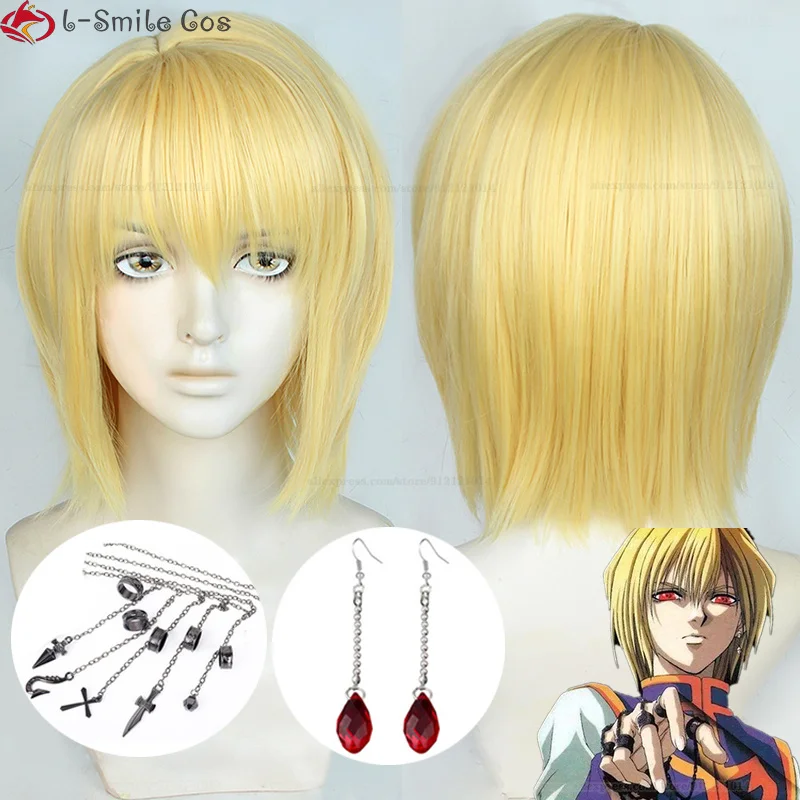 Аниме HUNTER×HUNTER Kurapika Kurta косплей парик короткий золотой и серьги кольца Pops термостойкие волосы Kurapika парики + парик шапка