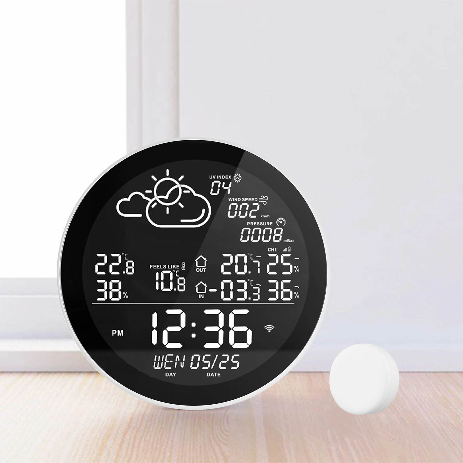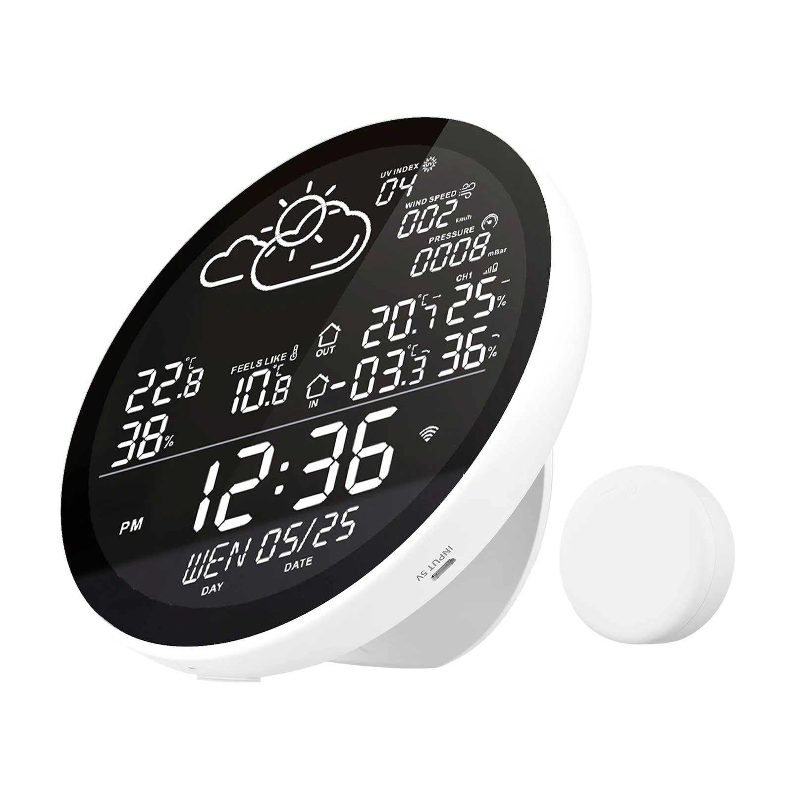 Большой ЖК-экран для отображения информации о погоде, времени, даты, температуры в помещении/на открытом воздухе и влажности одновременно, и содержимое дисплея может быть DIY в соответствии с вашими предпочтениями.