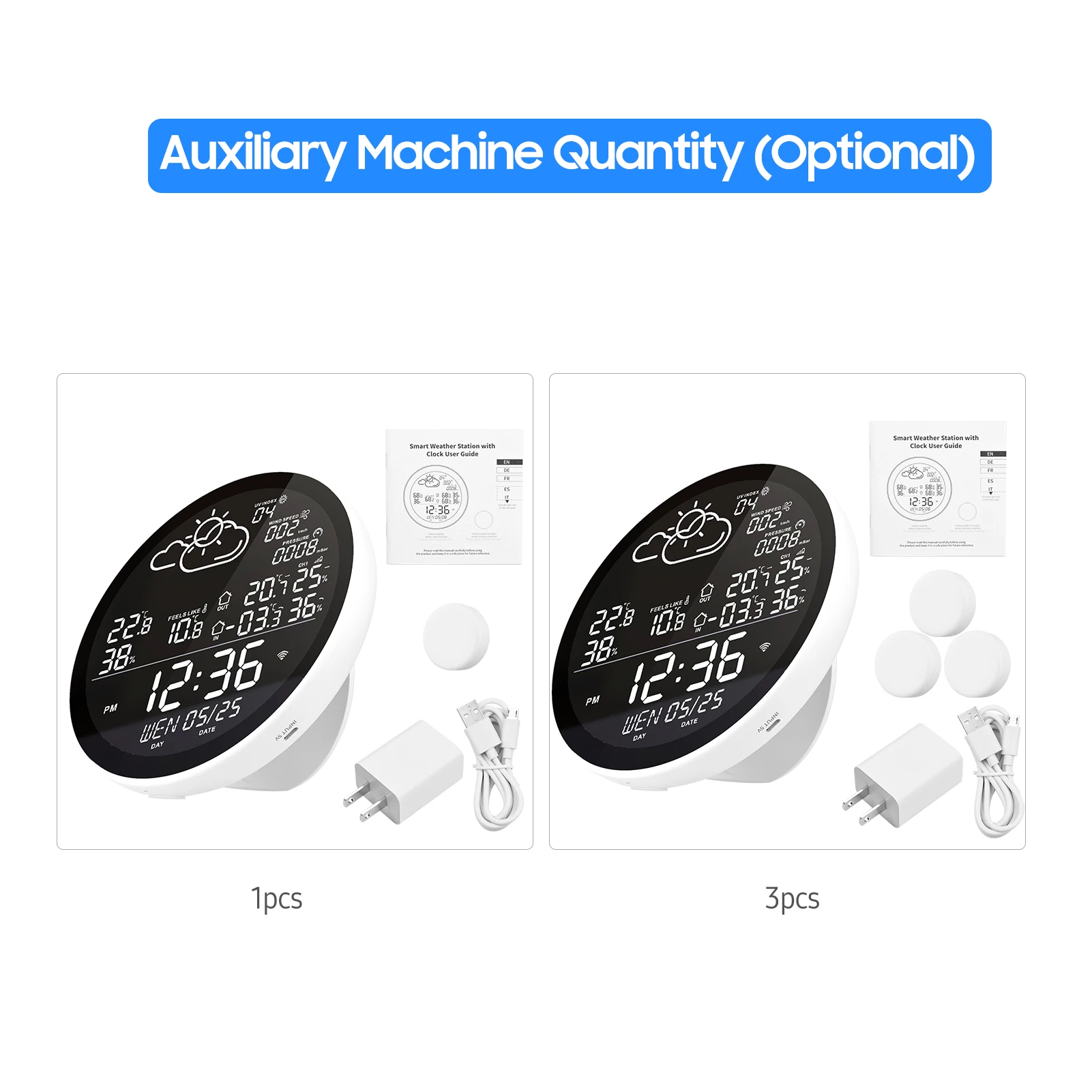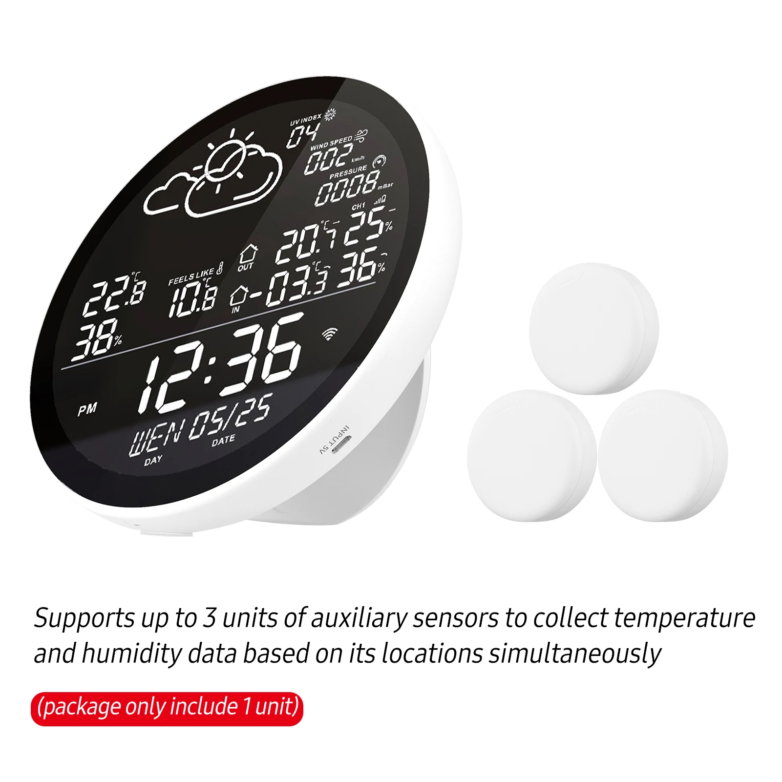 Поддерживает до 3 единиц вспомогательных датчиков (посылка включает только 1 единицу) для сбора данных о температуре и влажности на основе ее местоположения одновременно.