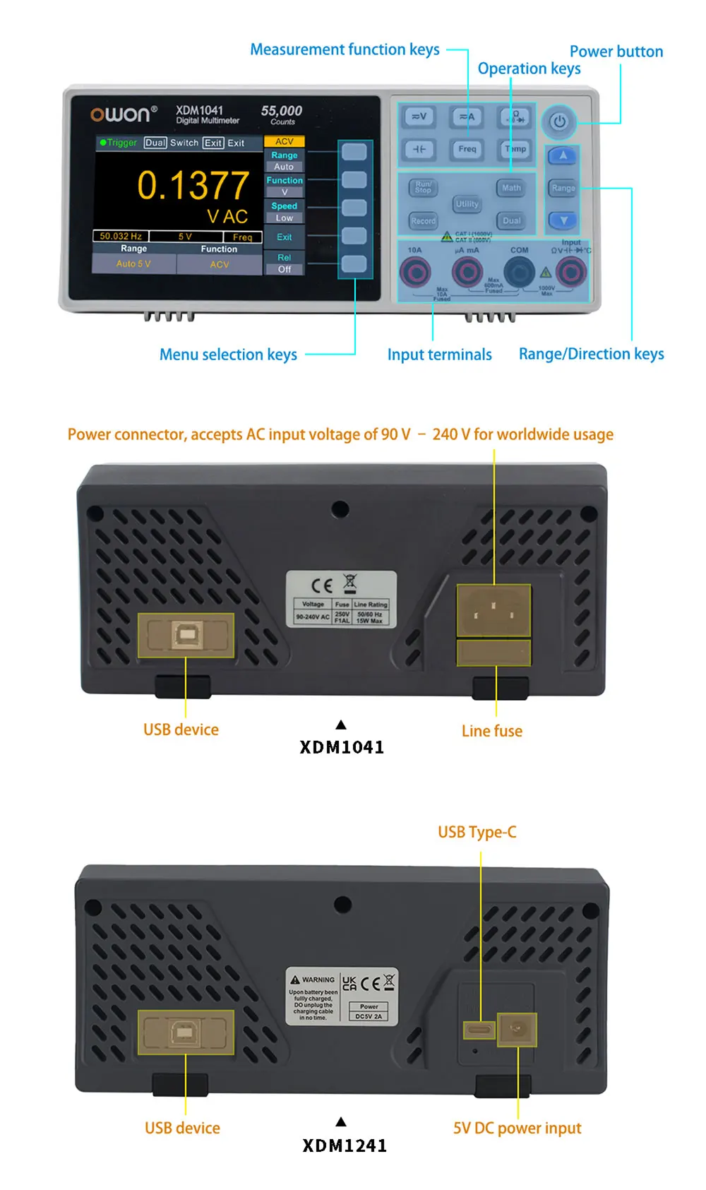 + 55000 отсчетов, точность напряжения постоянного тока до 0.05%