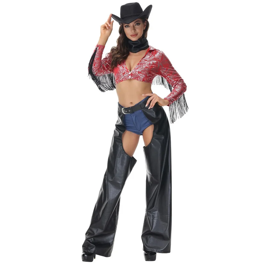 1 комплект: Топ + комбинезон + шорты + ремень + длинные кожаные штаны + шапка