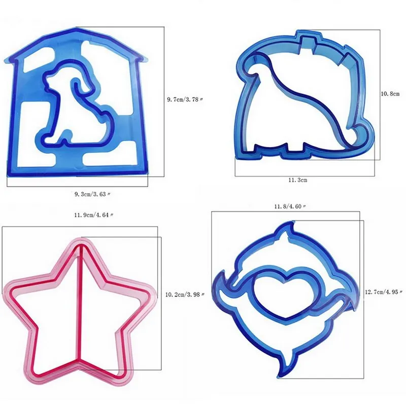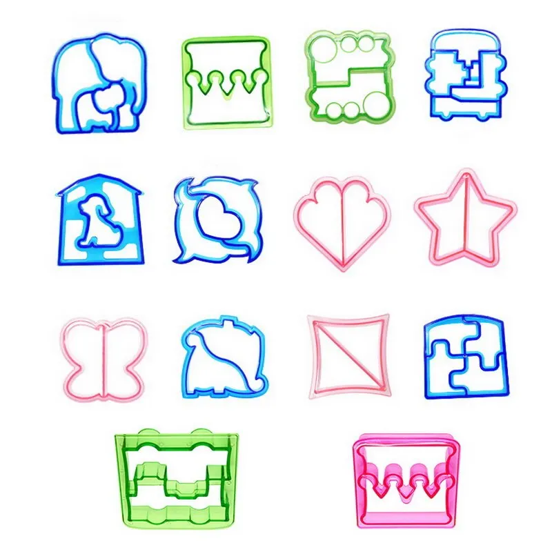 Описание: Ланч DIY бутерброды Резак прессформы для резки еды высечки хлеба печенья формы для детей Инструменты для выпечки Особенности: Отличный способ поощрить ваших детей принять участие в приготовлении пищи. Легко моется, безопасен в использовании, предназначен для долговечности, без острых краев, что делает их идеальными для детских вечеринок, пикников или любых деталей. Создайте красивые формы, Сделайте свою еду веселее и поделитесь счастьем с семьей и друзьями. Сделать еду более интересной и вызвать детское любопытство о еде. Он безопасен и нетоксичен пищевым пластиком. Он подходит для бутербродов, печенья, хлеба и пирожных. Характеристики: Материал: пищевой пластик Размер: как на картинке Форма: Дельфин, пазл, щенок, слон, динозавр, пентаграмма, Бабочка, любовь, треугольник, локомотив, автомобиль, Корона