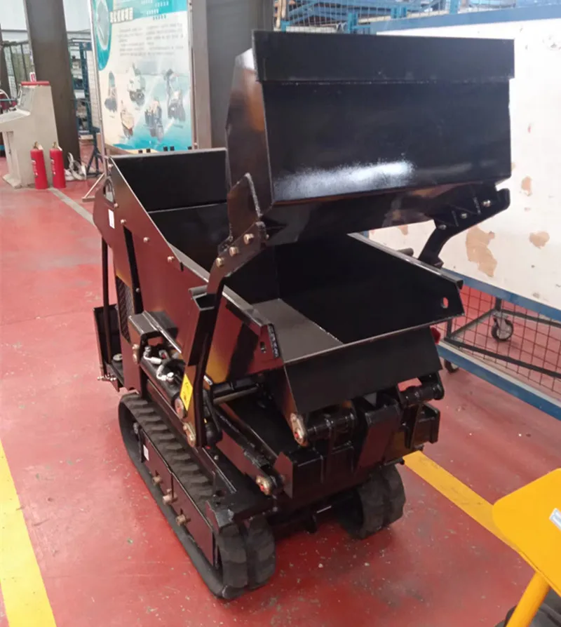 Гусеничный мини самосвал имеет сверхмощный ковш подходит для различных работ; Резиновые дорожки обеспечивают лучшее низкое давление заземления.