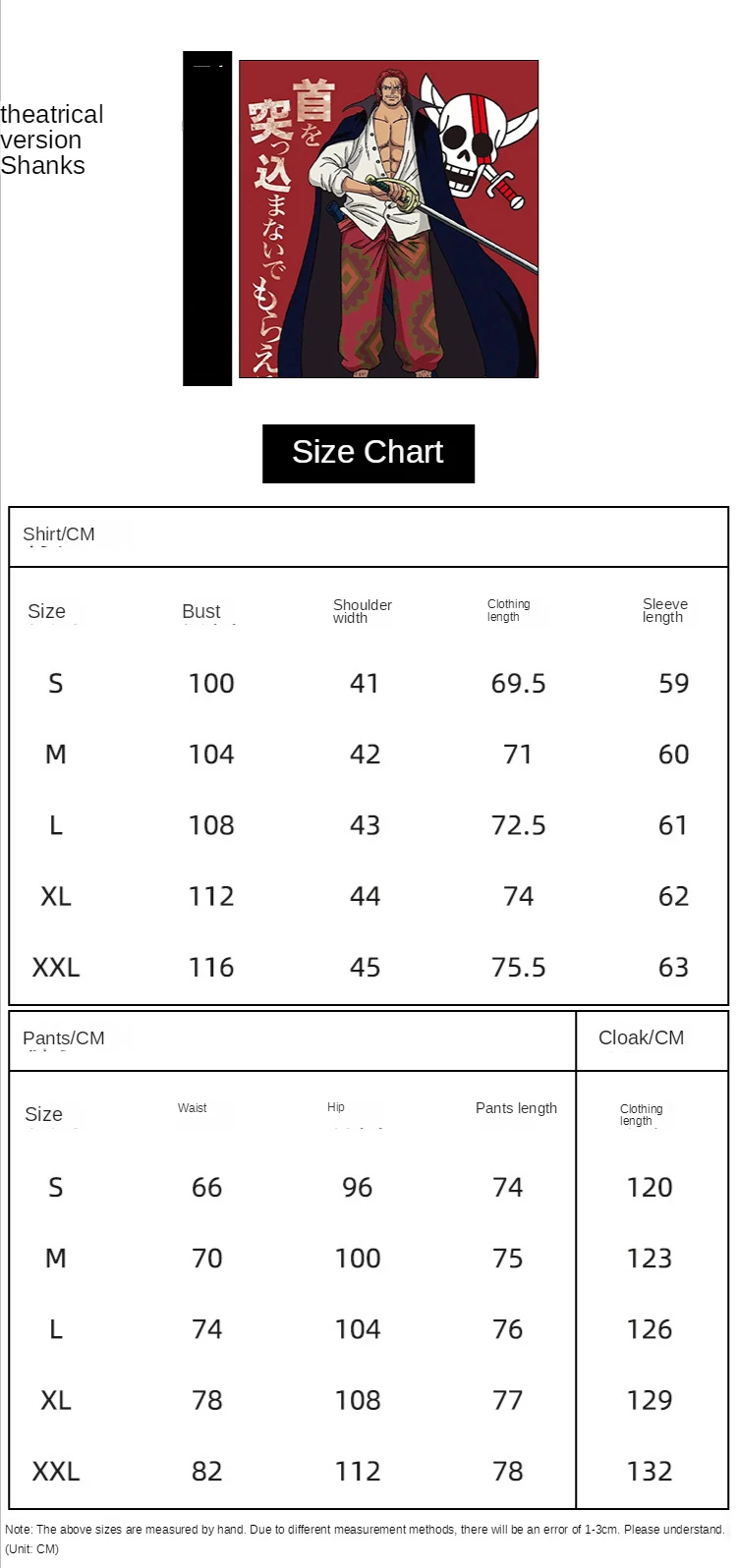 Из-за особенностей костюмированных костюмов размер каждого предмета одежды отличается, пожалуйста, выберите одежду, которая вам подходит в соответствии с размером таблицы, или вы можете связаться со мной, И я порекомендую вам соответствующий размер.