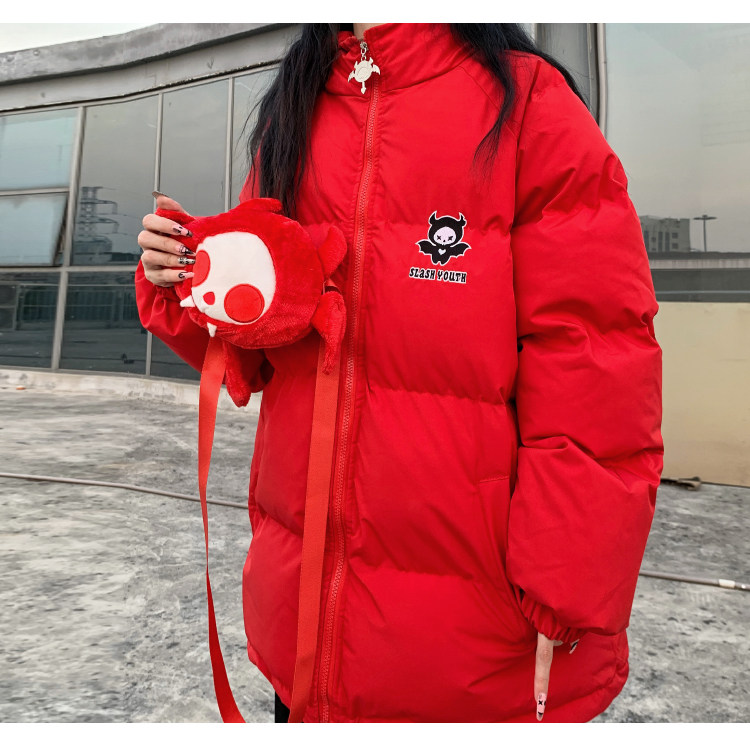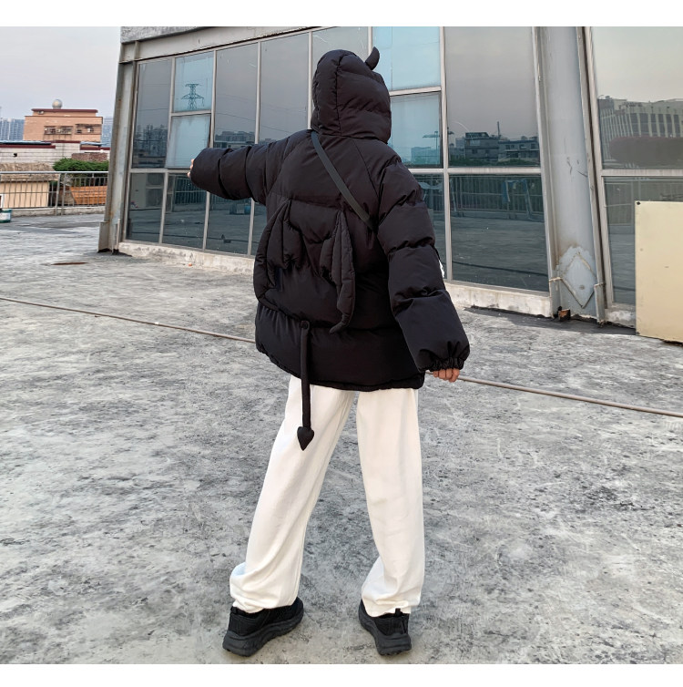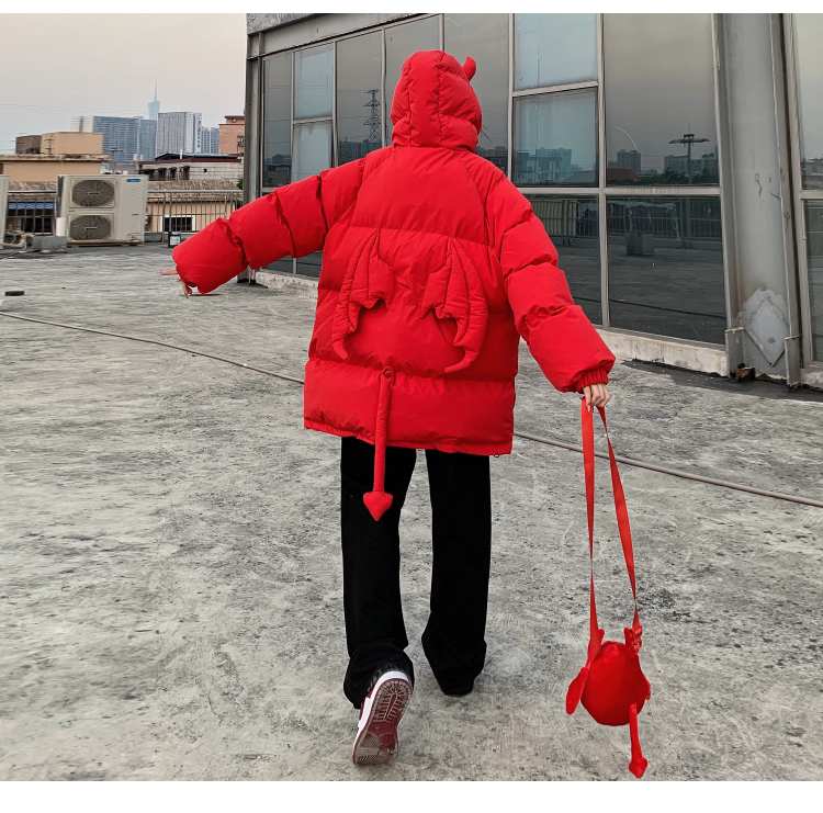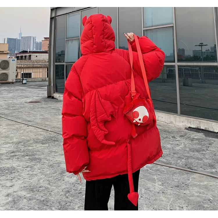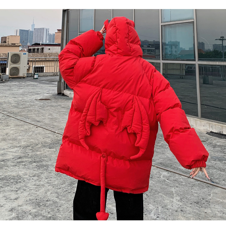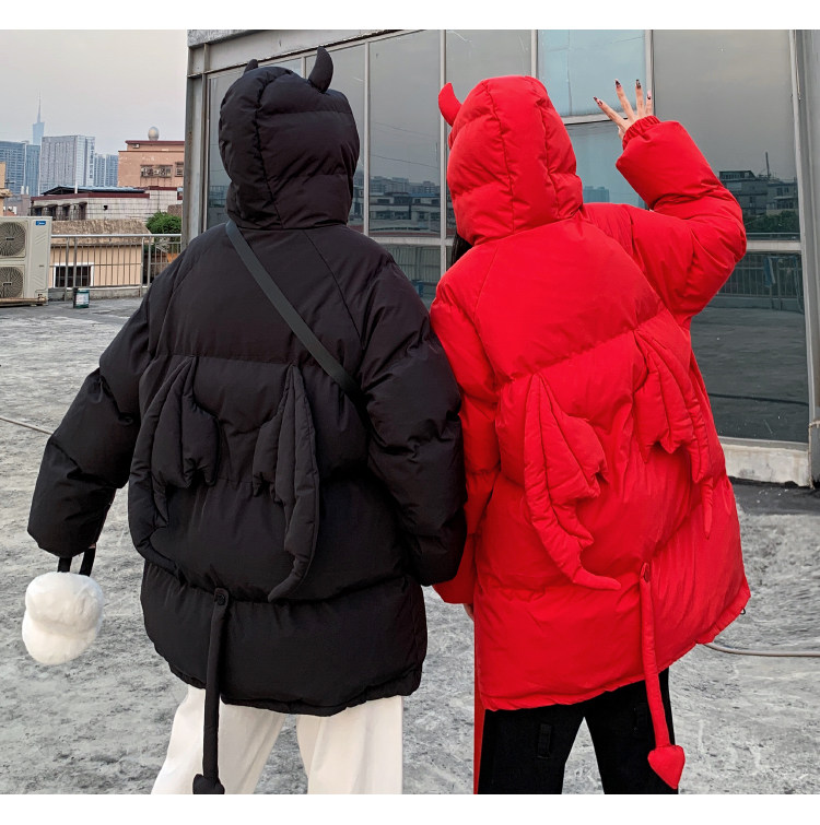 Мужские парки в стиле хип-хоп, уличные куртки на подкладке с капюшоном и рожками дьявола + хвост, плотные теплые пальто-пузырь с куклой, унисекс, 2022