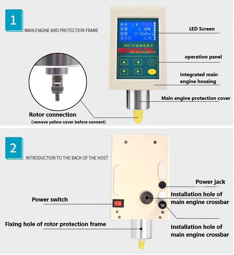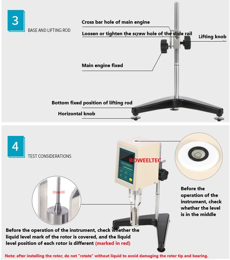 2) типы роторов: 1 #, 2 #, 3 # и 4 # роторы; (вы можете определить Вязкость до 0,1mpa. s с 0 # ротором).