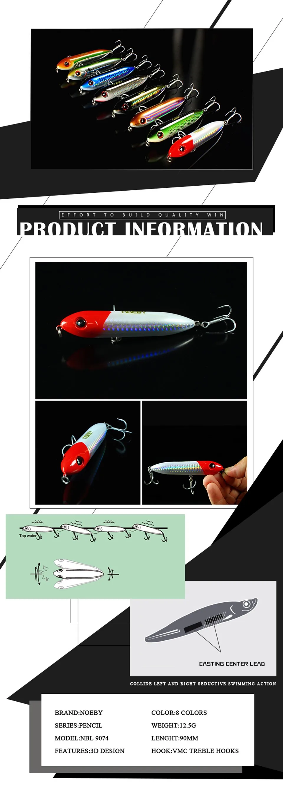 3. Уникальный 3D дизайн, тонкое тело, яркое и гибкое плавание, высокая скорость ловли рыбы.