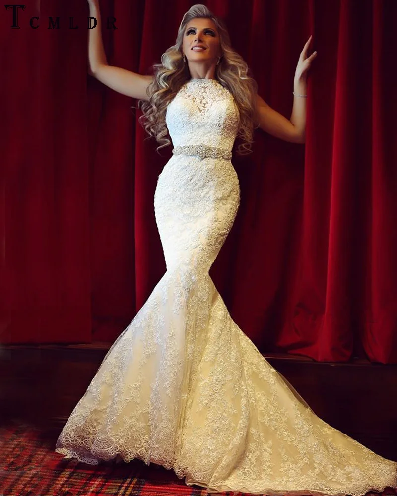 Tcmldr 2017 New Design Plus Size Wedding Dresses Long Mermaid Wedding Gowns Sexy Deep V-neck Crystal Beaded Backless Bridal Gown