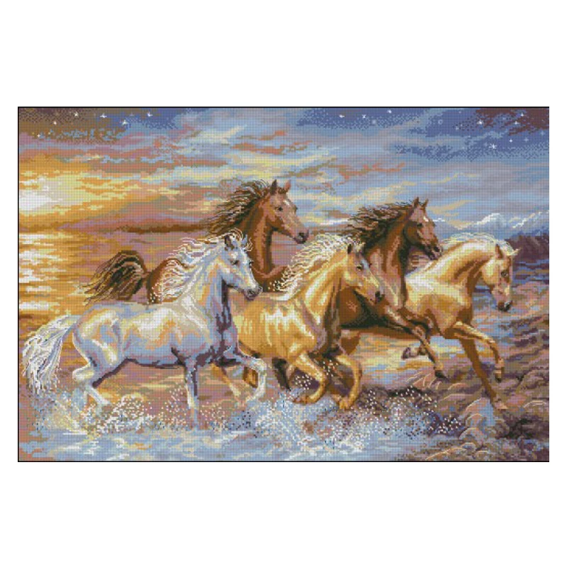 Высокое качество Горячая продажаСчетныйНабор крестиков лошадь пять лошадей в реке в звездную ночь