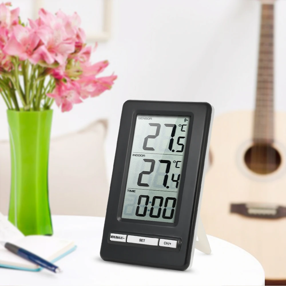 LCD Digital Wireless Thermometer Indoor and Outdoor Temperature Measurement C/F Max/Min Value Display 12H/24H Clock