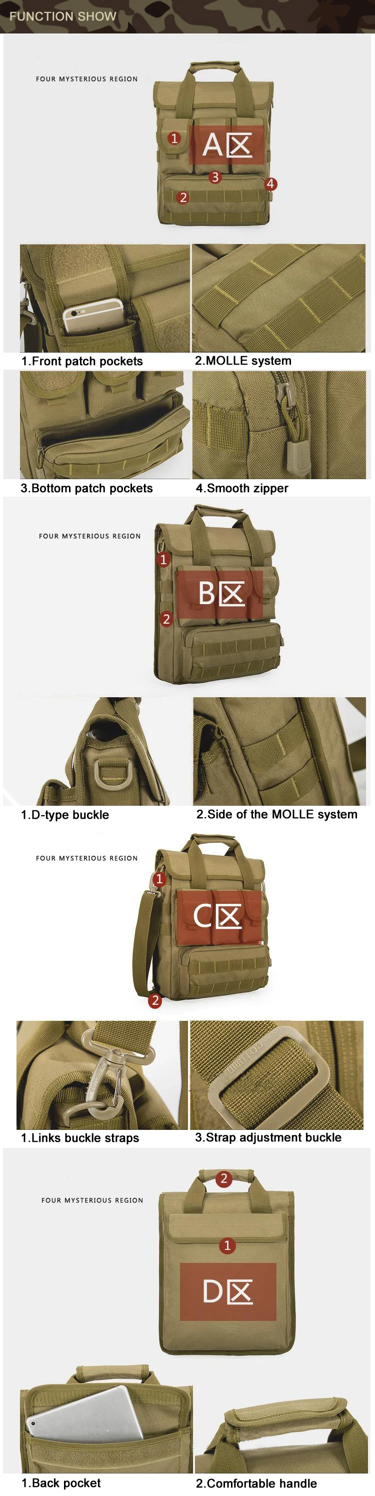 Наименование товара: большая сумка через плечо, сумка для iPad, дорожная сумка Материал: прочная нейлоновая ткань Подкладка: высококачественный мерсеризованный хлопок Размер: длина: 28 см, ширина: 7 см, высота: 34 см Вес: 650 г MOLLE расширения функция Широкие бретели Хорошо проветриваются Регулируемый поясной ремень Примечание 1: цвет может немного отличаться из-за настроек монитора компьютера. Примечание 2: при разнице в способе измерения допускается отклонение в размере на 1-3 см. Примечание 3: новая сумка только что пришла с фабрики, поэтому может быть небольшой запах. |