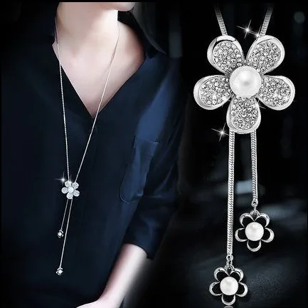 BYSPT Снежинка длинное ожерелье модный кристалл цветок лебедь тюльпан кулон ожерелья Регулируемый свитер цепь