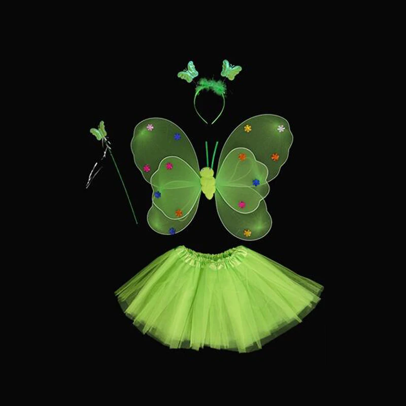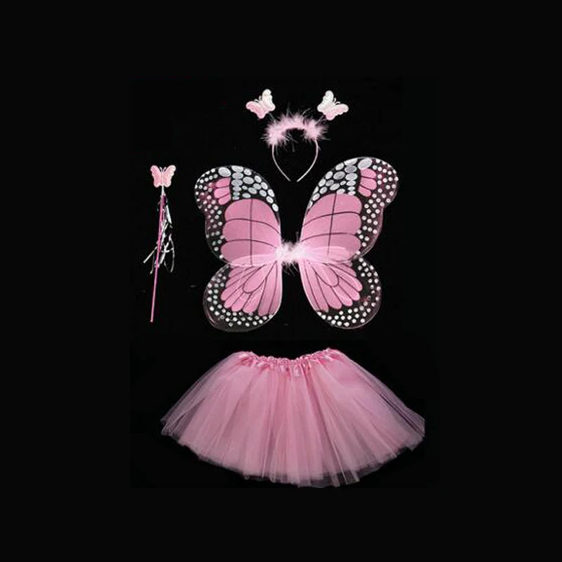 Костюм с крыльями феи для девочек; цветной головной убор; сетчатая юбка; Детский комплект волшебной палочки; Fantasias De Meninas Disfraces; вечерние костюмы на Хэллоуин и карнавал