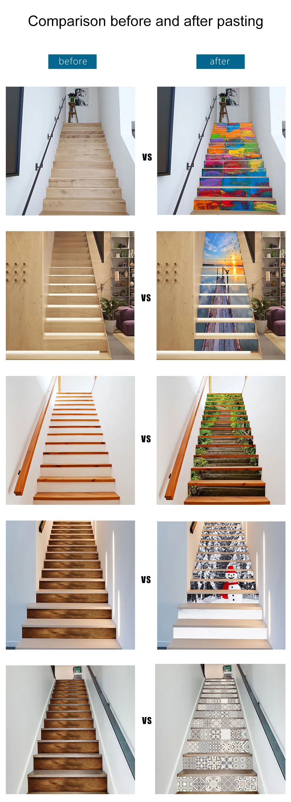 Название продукта: 13 шт./компл. Креативные 3D наклейки для лестниц s Sunrise Sea View Stairway, настенные наклейки для лестниц, декоративные обои, наклейки для пола Вес изделия: 360 г 720 г Упаковка продукта: Opp мешок Размер изделия: 100*18 см * 13 шт. 100*18 см * 6 шт. Материал изделия: экологичный ПВХ винил Характеристики продукта: Этот продукт изготовлен из прозрачной ПВХ-пленки, защита окружающей среды и водонепроницаемость, съемный самоклеящийся водонепроницаемый термостойкий маслостойкий богатый креативный дизайн, прилипающий в спальне, сделайте жизнь, которая занимает дом, энергичной, пусть человеку будет комфортно! Основные Хорошие новости: магазин поддерживает оптовую продажу, если вы покупаете более 3 комплектов или более, система автоматически даст вам скидку. Обычно скидки от 3 до 10