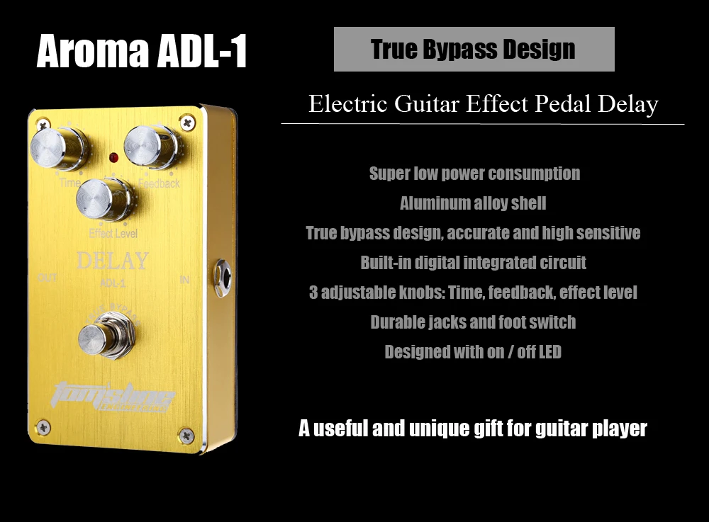 Аромат ADL-1 Электрический гитарный эффект педали задержки истинная объёмная конструкция алюминиевый сплав корпус 3 регулируемые ручки гитарный аксессуар
