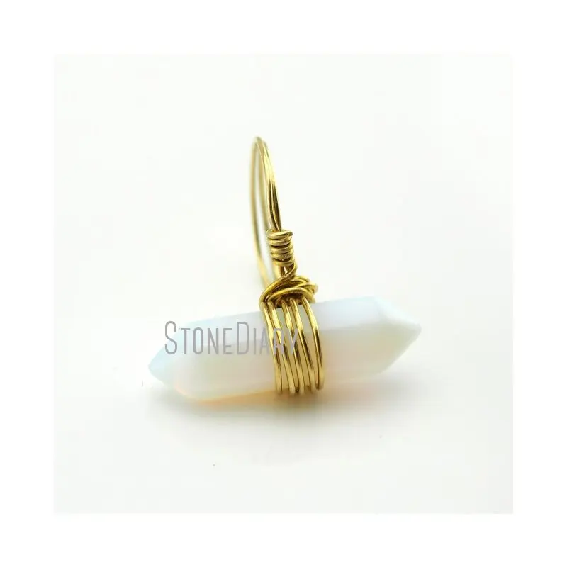 RM13023 хит продаж Опаловое кольцо провод обернутый позолоченный гальванический граненый двойной конец точка кольцо 6-8