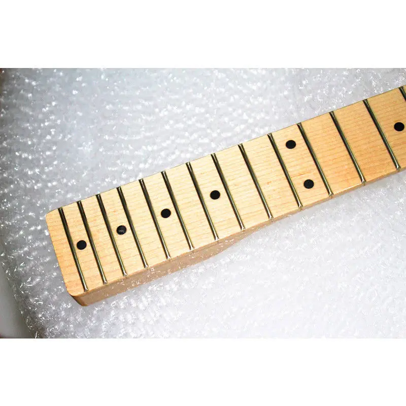 21 Frets glossy paint maple Electric Guitar Neck maple fretboard inlay dots guitar accessories can be customizedNut width is 42mm , heel width is 56-57mm Scale length 648mm , 21 Frets Our factory can be made according to your need. |