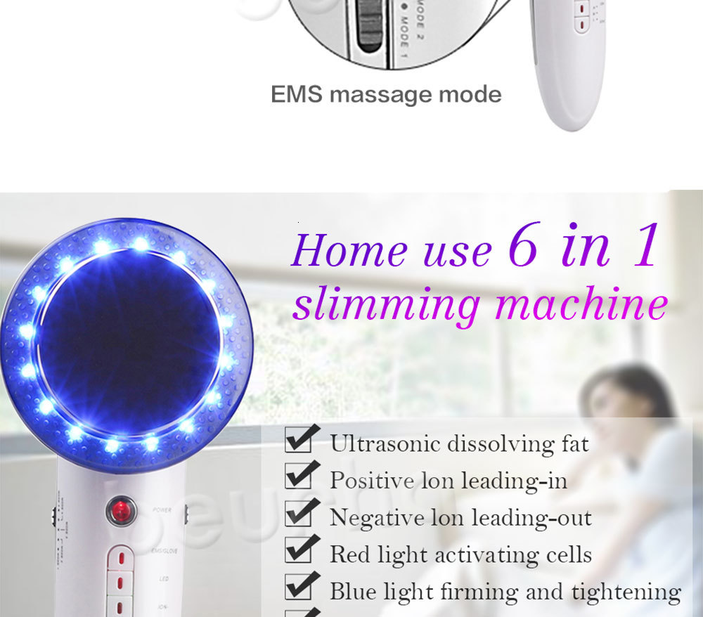 6 в 1 EMS ультразвуковой светодиодный аппарат для похудения с кавитацией и гальваническим ионом для лица, аппарат для акупунктуры, антицеллюлитный массаж для ухода за кожей