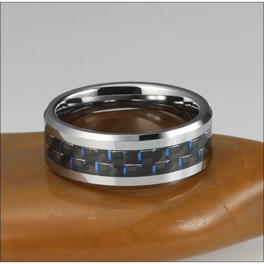 8 мм вольфрамовое кольцо черный синий инкрустация из углеродного волокна