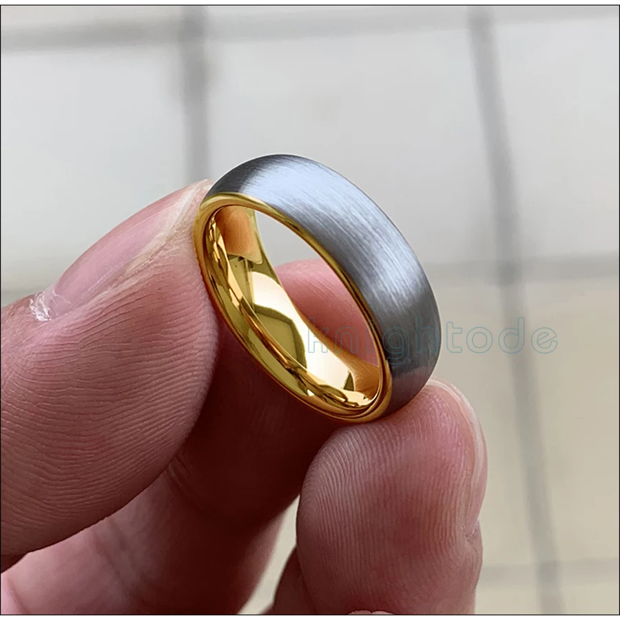 6 мм золото вольфрамовое кольцо купол серебристый матовый