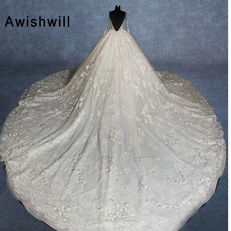 Vestido de Noiva Princesa кружевное свадебное платье с открытой спиной и длинным рукавом Королевский хвост роскошное бальное платье свадебное платье