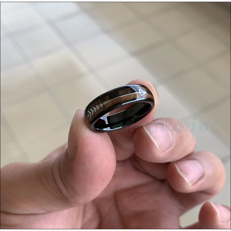 Черная Вольфрамовая кольцевая стрела 6 мм/полированная полоса с деревянной инкрустацией