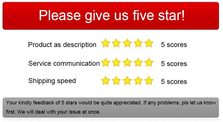 Отзывы с пятью звездами очень важны для нас Loripos ltd. Если есть какие-либо проблемы с удовлетворением или повреждением нашего сервиса и продукта, пожалуйста, свяжитесь с нами, прежде чем оставлять комментарии или оставлять спор. Мы ответим и начнем решать вашу проблему в течение 1 дня. Спасибо за терпение и понимание. Мы предоставим VIP-членство, отличный сервис для хороших клиентов на основе нашего сотрудничества!