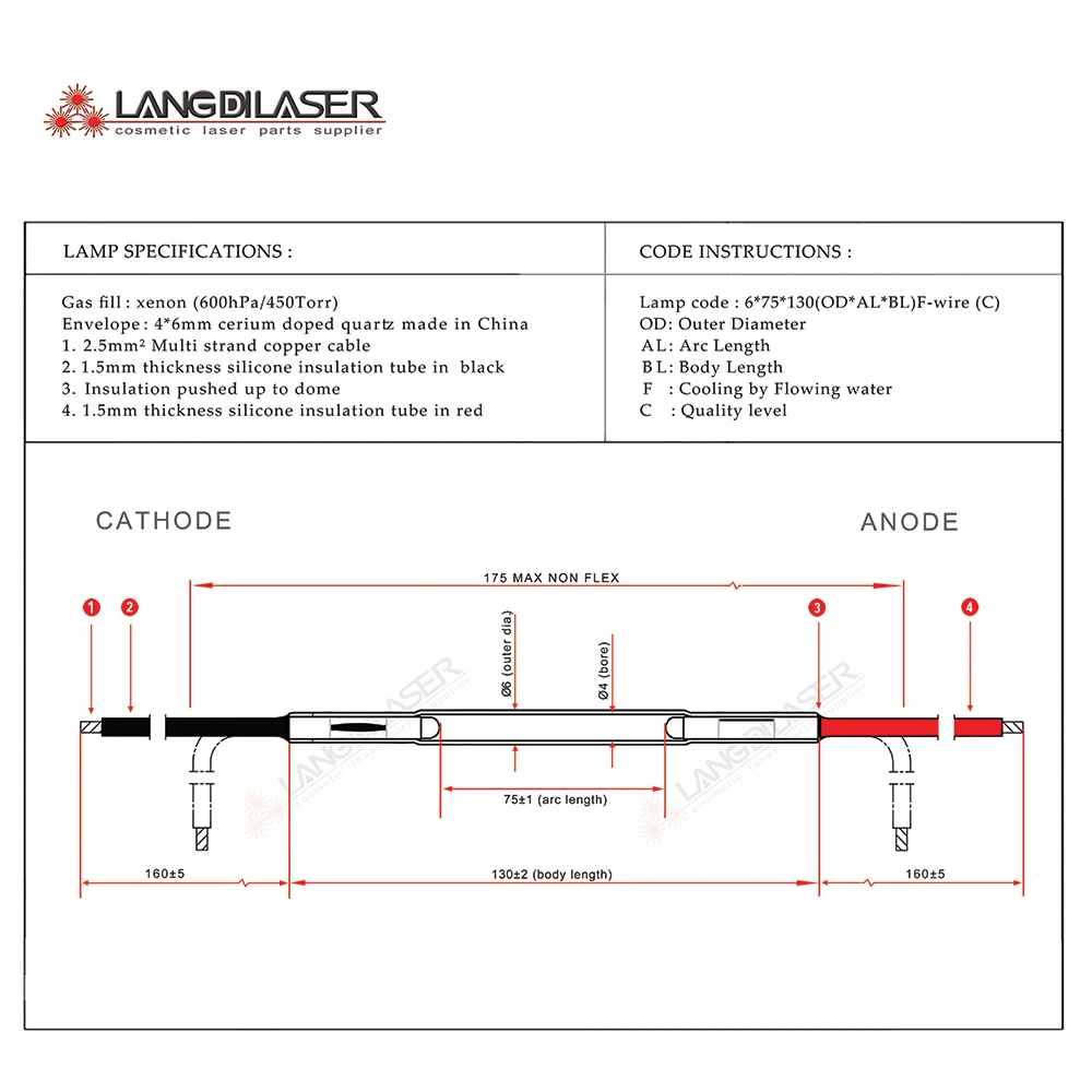 Модель: YAG lamp 6*75 * 130F (провод)-качество C