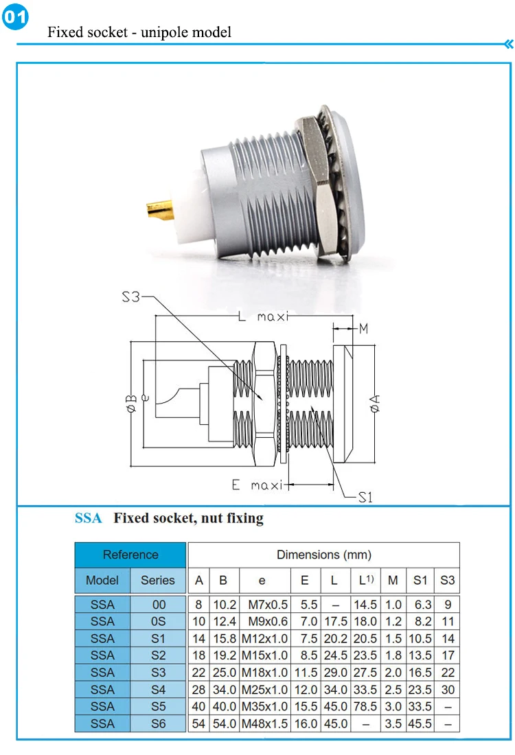 From SZRICO, a range of metal cable plugs and sockets from the S series, providing the following main features: