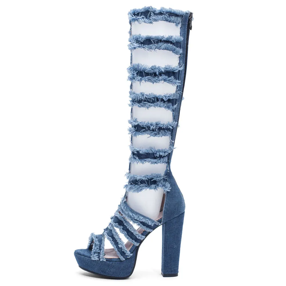 Lasyarrow 2019 женские босоножки Обувь из грубой ткани на каблуке обувь из денима с открытым носком на молнии; Летние модные женские римские сандалии с высоким уровнем на каблуках; В стиле Гладиатор сандалии Размеры; Большие размеры 33-43, J756