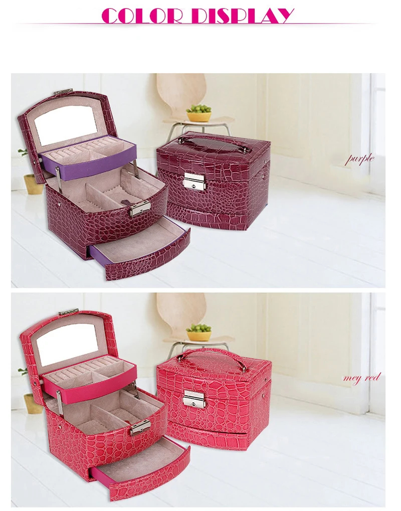 Эта коробка с крокодиловым узором, автоматическая коробка для ювелирных изделий, трехслойнаяЧехол для хранения с косметическим зеркалом