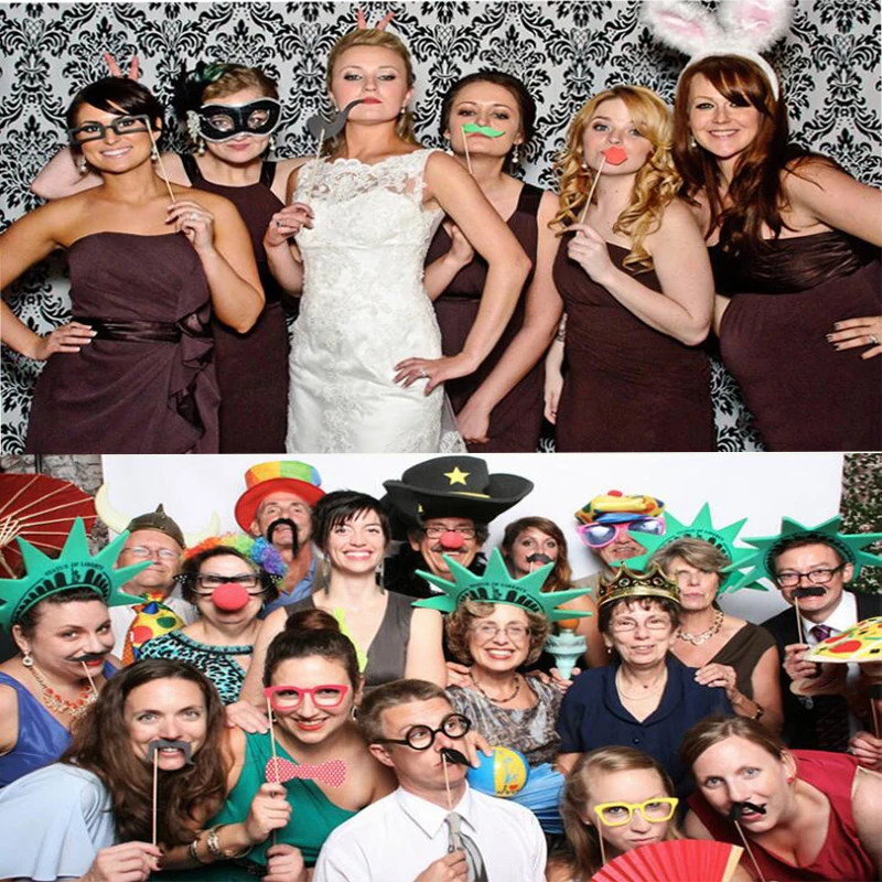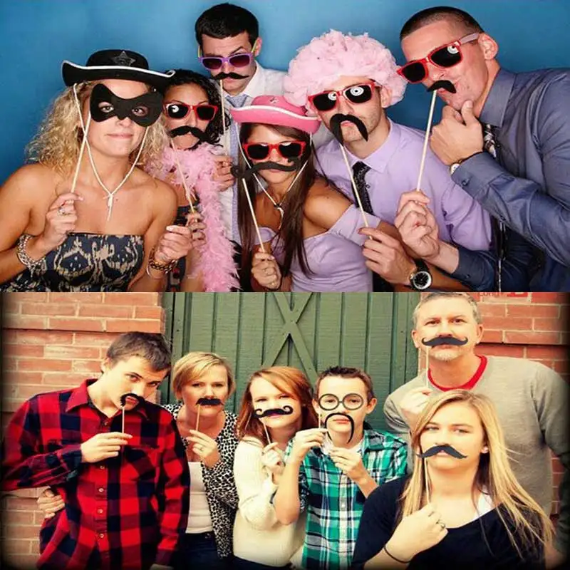 A set of contains: 21 various props, dot glue 21 points, 21 root bamboo stick. Creative birthday photo props wacky wedding wedding decoration supplies photo props essential supplies